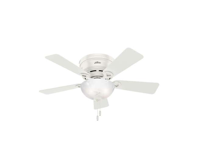 Hunter dempsey 44 hugger with light ceiling fan 59244 in fresh white.